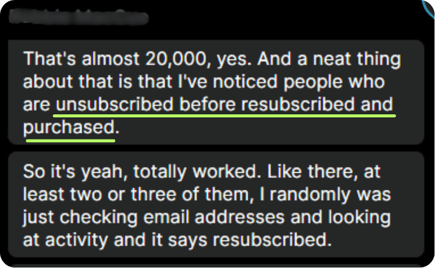 Launched ads with new aligned messaging for this client, and previous unsubscribers started to resubscribed and purchase from him